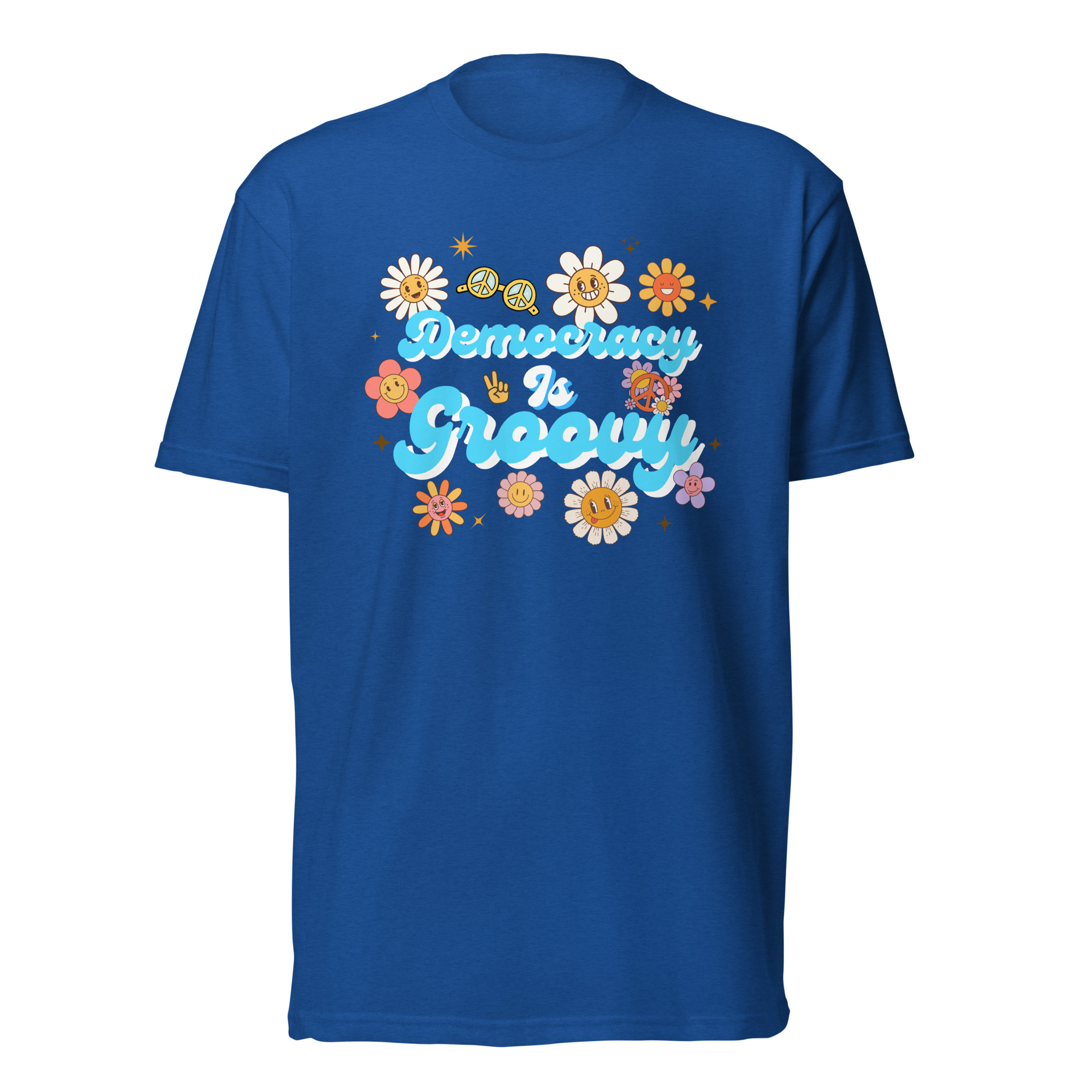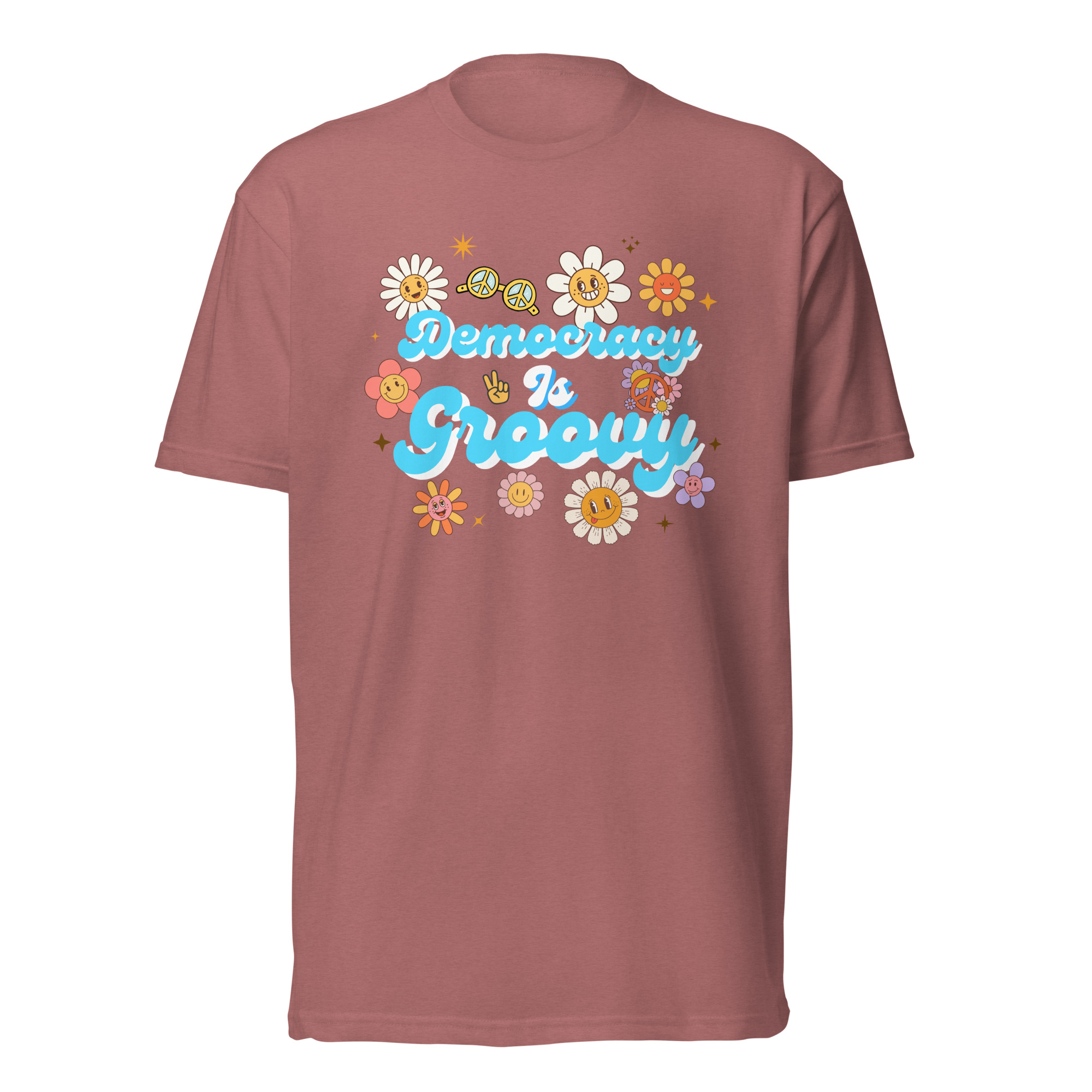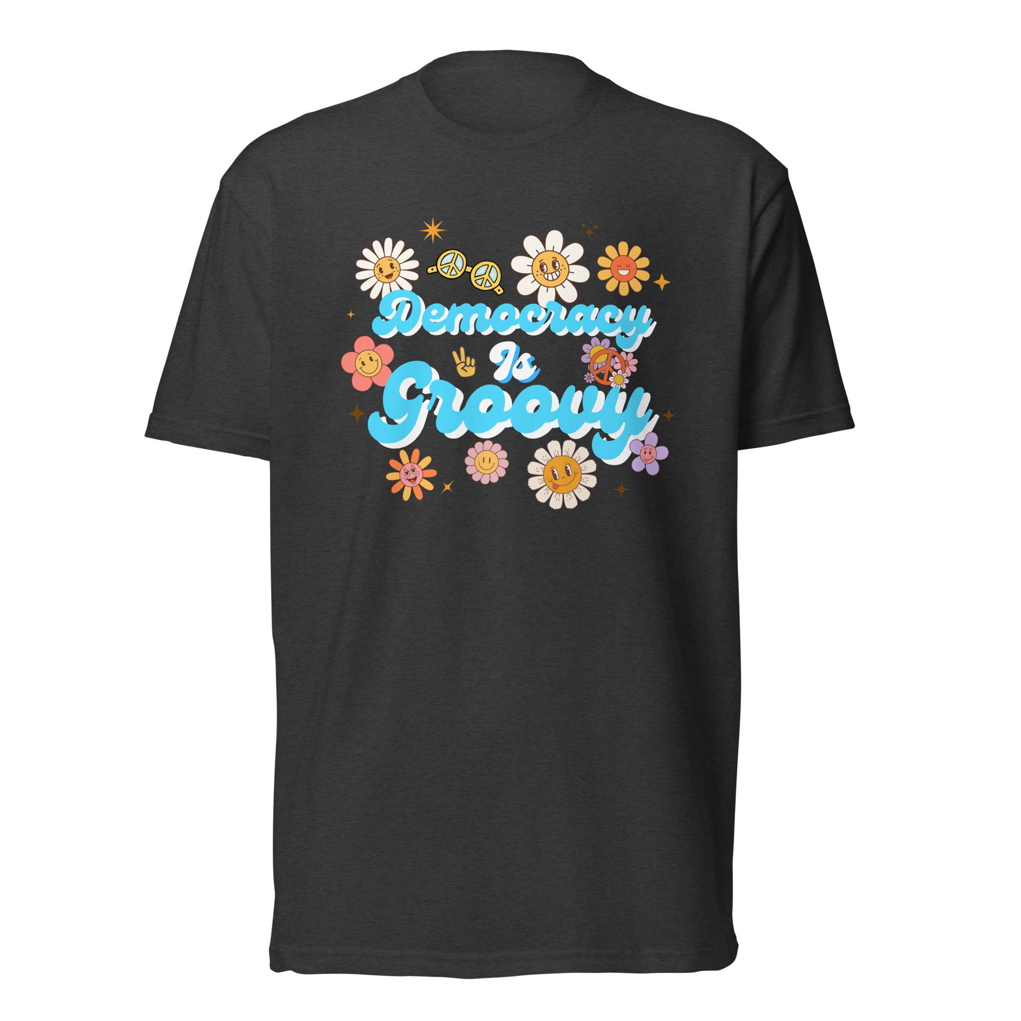 Bringing on the retro vibes, this shirt lets everyone know- HEY! Democracy is groovy maaaaaan!